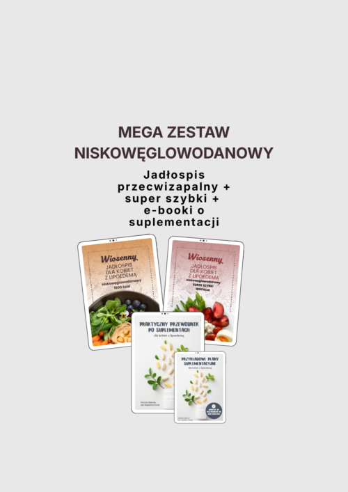 Kompletny zestaw dla kobiet z lipoedemą, które chcą działać przeciwzapalnie, ale bez wchodzenia w pełne keto.